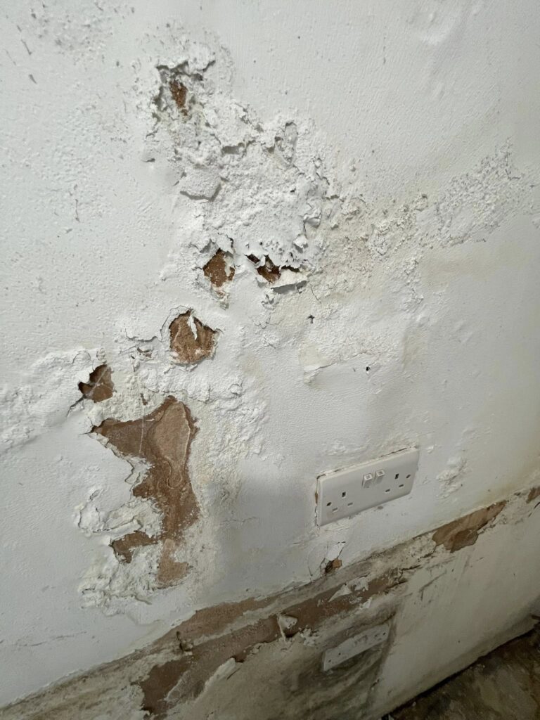 • Penetrating Damp – caused by leaks, damaged render, or poor pointing